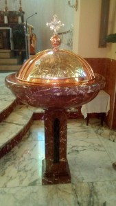 dell’Addolorata. In quella di sinistra era il Fonte battesimale con un altorilievo del Battesimo di Gesù, trasformata nel mese di Aprile del 2018 in Cappella della Divina Misericordia con il Quadro di Gesù Misericordioso e quelle dei Santi Giovanni Paolo II e Faustina Kowalska, che diffusero e favorirono tale devozione. Notevole è il paliotto dell’altare, realizzato in scagliola, per imitare i marmi e le pietre dure. L’antico Fonte è stato posto alla destra del Presbiterio. Sulle pareti delle navate laterali sono 4 piccole nicchie con le statue di Gesù Bambino, la Madonna del Rosario, Sant’Antonio di Padova e Santa Rita da Cascia.